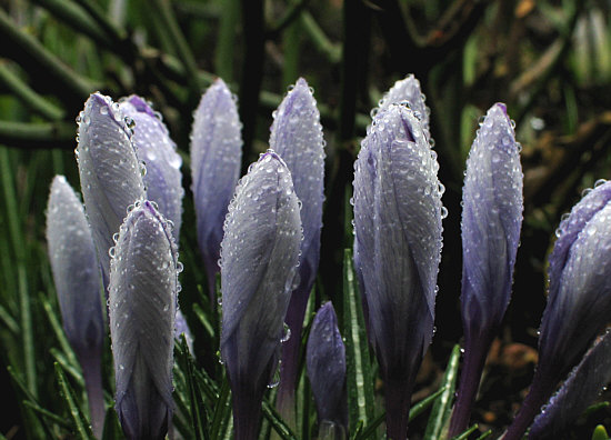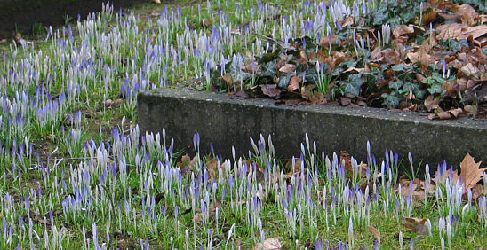 Der Tag war regnerisch, die Blüten schützten sich dagegen. Es wäre ein Traum gewesen, hätte die Streiflichter der Sonne die Krokusse geküsst. Einen Tag, nachdem ich dort war, schien die Sonne und beinahe wäre ich nur wegen dieser Blumen extra 100 km nach Mainz gefahren ... konnte mich dann aber grad noch beherrschen und meine Vernunft war Sieger.