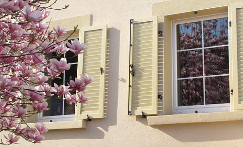 Ein paar Tage vorher ... Haus mit etwas anderer Farbgebung ... angehalten und aus dem stehenden Auto heraus das Haus fotografiert ... da öffnet sich im Nachbarhaus die Tür und der Frühlingswind weht die Frage "können sie mir sagen, warum sie ..." zu mir ... und meine Antwort "nein, kann ich nicht" wehte zurück. Und fort war ich.