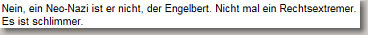 Wie schön, dass hiermit offiziell bestätigt wurde, dass ich weder Neo noch Nazi noch rechts, ja vielleicht noch nicht einmal braun bin.