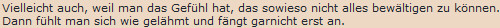 Bei manchen hat die Seele Hunger und dafür lassen sie den Körper essen. Andere wiederum trinken statt zu essen.